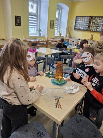Było twórczo, było głośno (jak na bibliotekę przystało... no, prawie), było kolorowo i bardzo wesoło! Dzieci stworzyły karnawałowe maski godne prawdziwego balu - cekiny, koraliki, pompony i piórka - wyobraźnia nie miała granic! ? Do tego gry stolikowe, piłkarzyki, nowe znajomości i oczywiście czytanie - bo nawet w feriach w bibliotece książki muszą mieć swoje pięć minut.