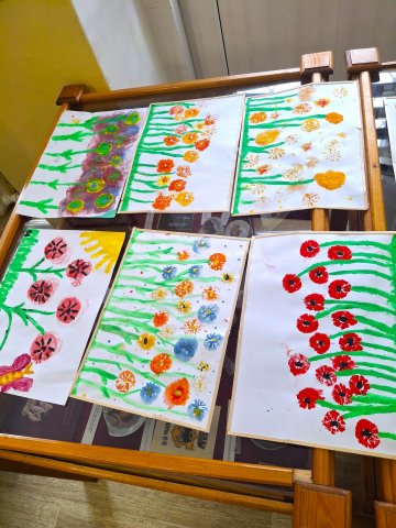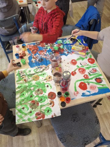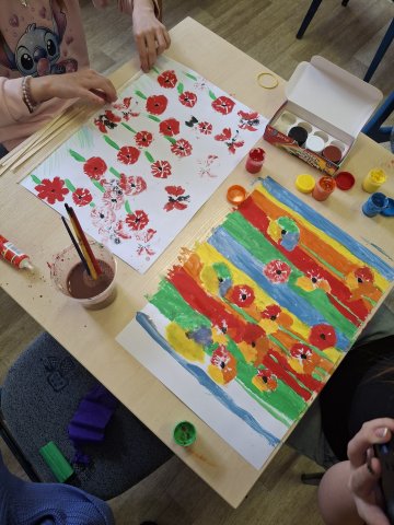 Farba oczywiście nie tylko na kartkach - ręce, rękawy, spodnie i bluzki też dostały swoją porcję sztuki nowoczesnej!