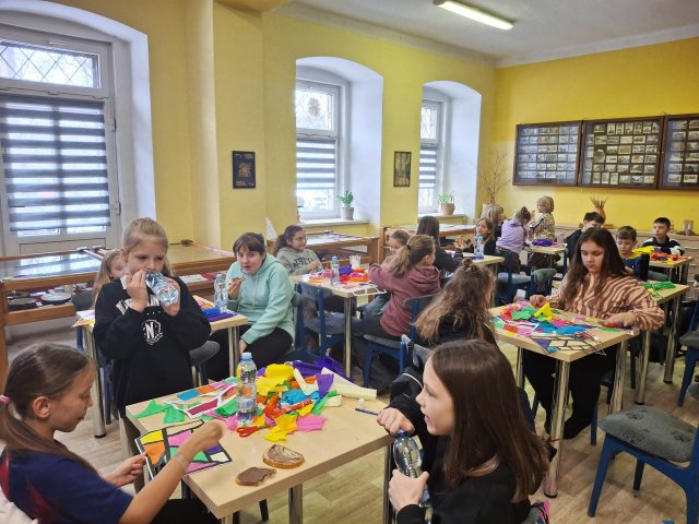 Przed drużyną łasuchów niemałe zadanie plastyczne - witrażowy lampion! W pracowni artystyczny nieład (czytaj: bałagan?), gwar i przede wszystkim dobry nastrój! A po ciężkiej pracy, jak to zawsze bywa, przyjemności - pyszny chlebek z Nutellą! Słodki poczęstunek to nie tylko celebrowanie dzisiejszego pysznego święta, ale i nagroda za piękne (i baaaardzo pracochłonne) prace. ? ? ?