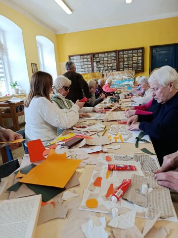 Pomimo że wszyscy czekamy na wiosnę, która zbliża się do nas małymi krokami, to zima za oknem nie odpuszcza i zachwyca pięknym krajobrazem. ❄️ Uczestnicy Dziennego Domu Pobytu Senior + w Paczkowie, na zorganizowanych przez bibliotekę warsztatach, projektowali nietuzinkowe i kreatywne zimowe pejzaże z różnorodnych materiałów - tworząc trójwymiarowy obraz. Warsztaty plastyczne to nie tylko twórczość, ale przede wszystkim dobra zabawa, czas pełen uśmiechu, rozmów przy kawie i dobrej herbacie.