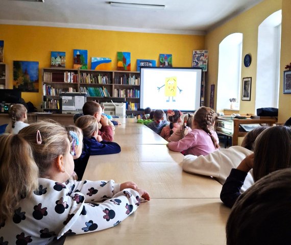 Podpowiedzią do tej pracy plastycznej był wyświetlony za pomocą projektora filmik o płaczącej książce, która skarżyła się na złe traktowanie przez dzieci. ? Oczywiście wszyscy uczniowie doskonale znali zasady obchodzenia się z książkami. ?