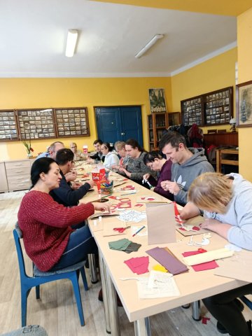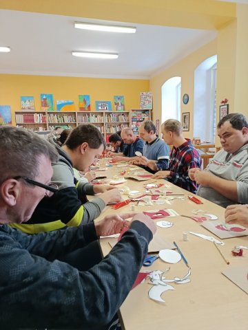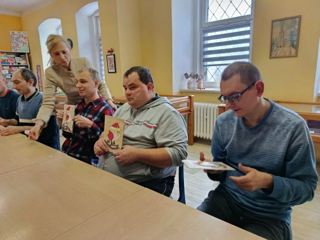 Uczestnicy Środowiskowego Domu Samopomocy w Paczkowie wzięli udział dzisiaj, 2 grudnia 2025 roku o godz. 11:00, w przygotowanych przez bibliotekę warsztatach tworzenia kartek świątecznych i z chęcią prezentowali swoje dzieła. ? Bo kto nie lubi świątecznej atmosfery?? ?
