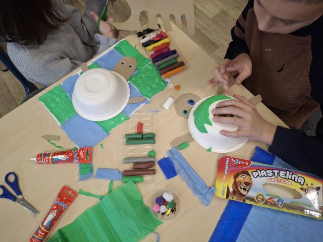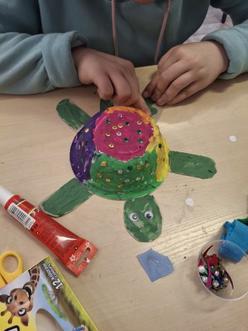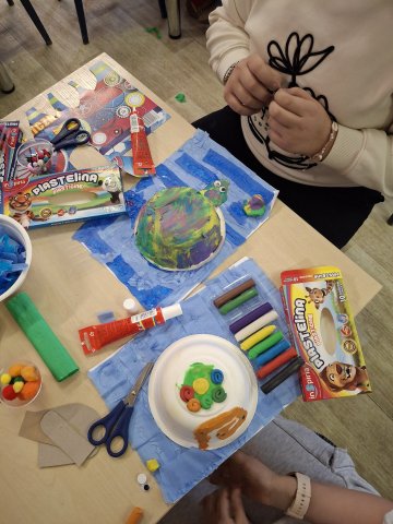 Jak sama nazwa wskazuje dzisiejszą pracę plastyczną wykonywaliśmy.... w żółwim tempie. ? Powoli, baaardzo powoli...