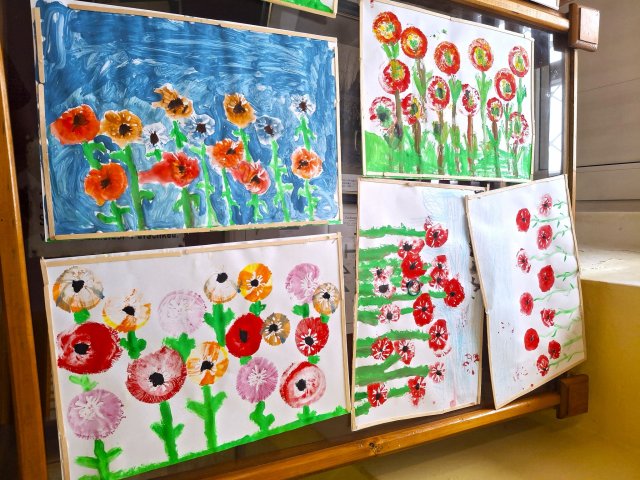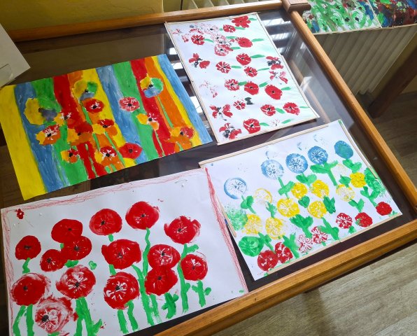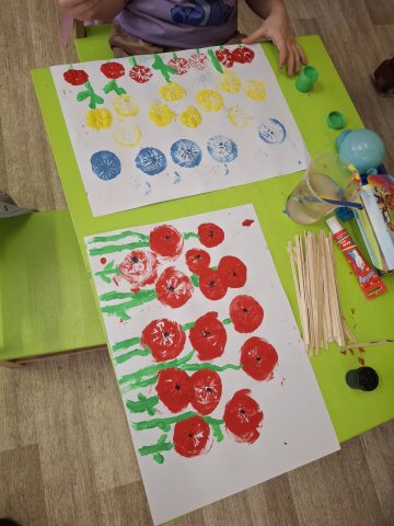 Farba oczywiście nie tylko na kartkach - ręce, rękawy, spodnie i bluzki też dostały swoją porcję sztuki nowoczesnej!